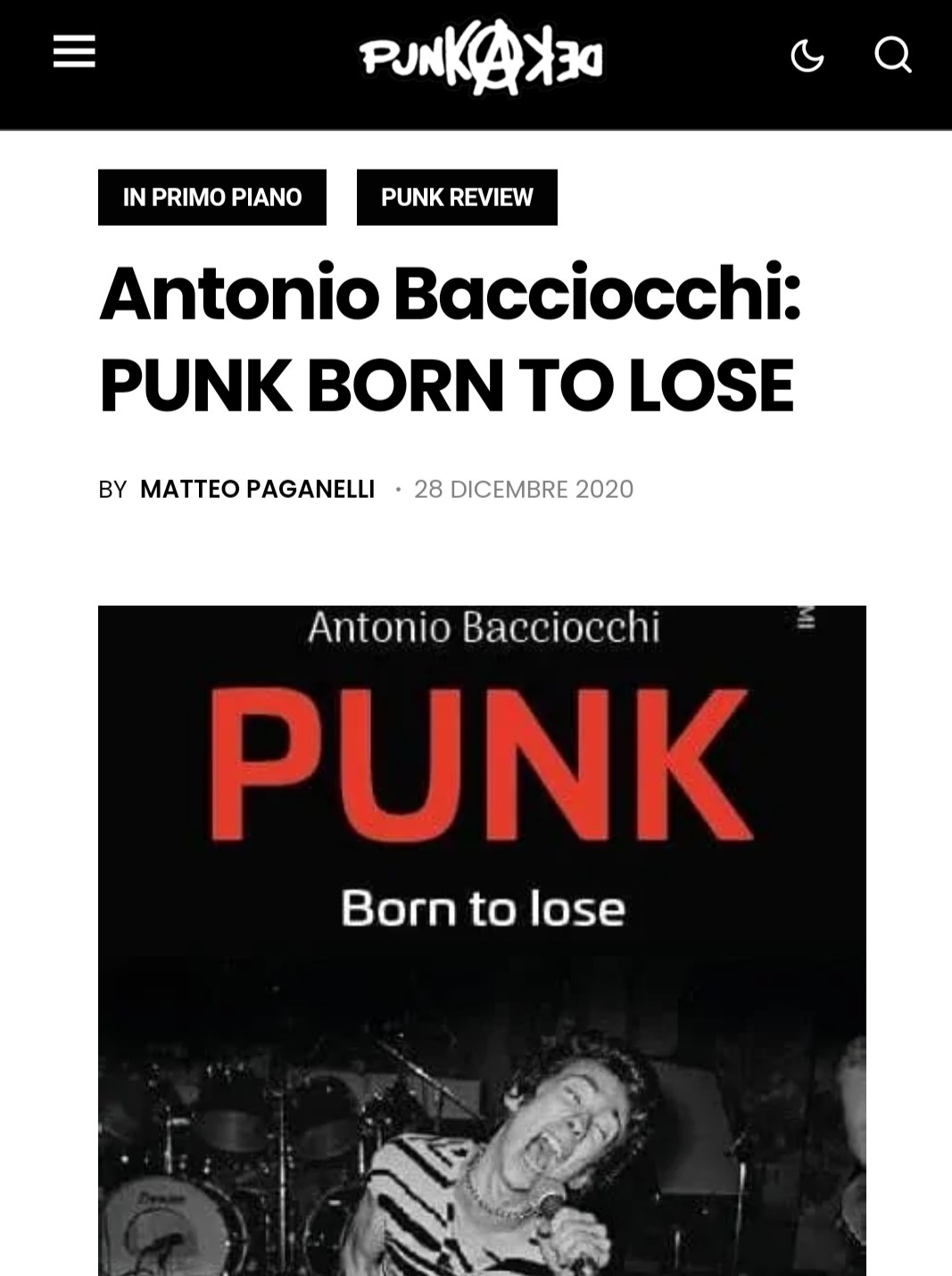 Antonio Bacciocchi: PUNK BORN TO LOSE su Punkadeka - Recensione di Matteo Paganelli
