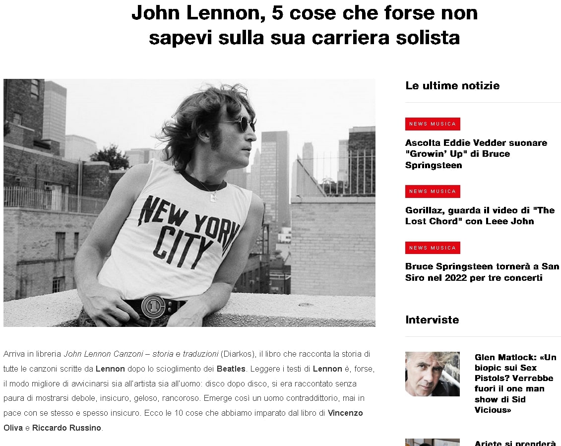 John Lennon, 5 cose che forse non sapevi sulla sua carriera solista- John Lennon di V. Oliva e R. Russino su Hey Jude Magazine