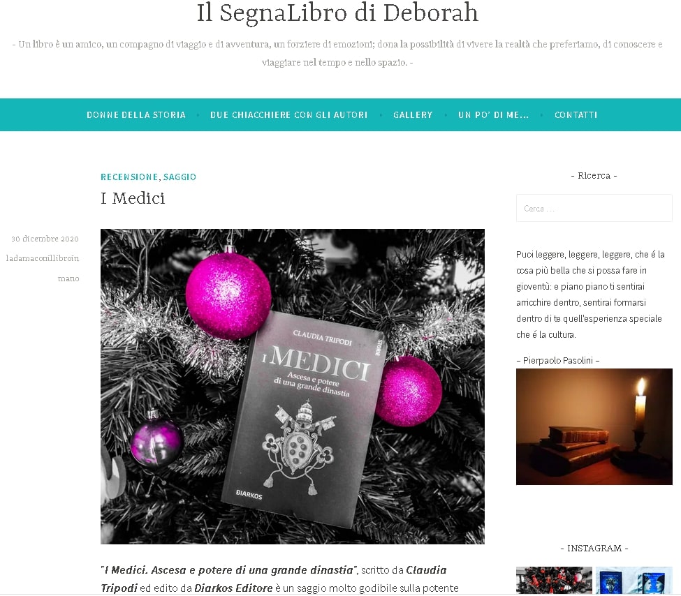"I Medici" di Claudia Tripodi - Recensione sul blog Il segnalibro di Deb