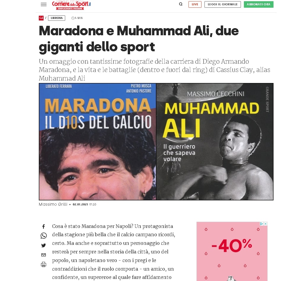 Muhammad Ali di Massimo Cecchini su Corriere dello Sport del 02/01/2021