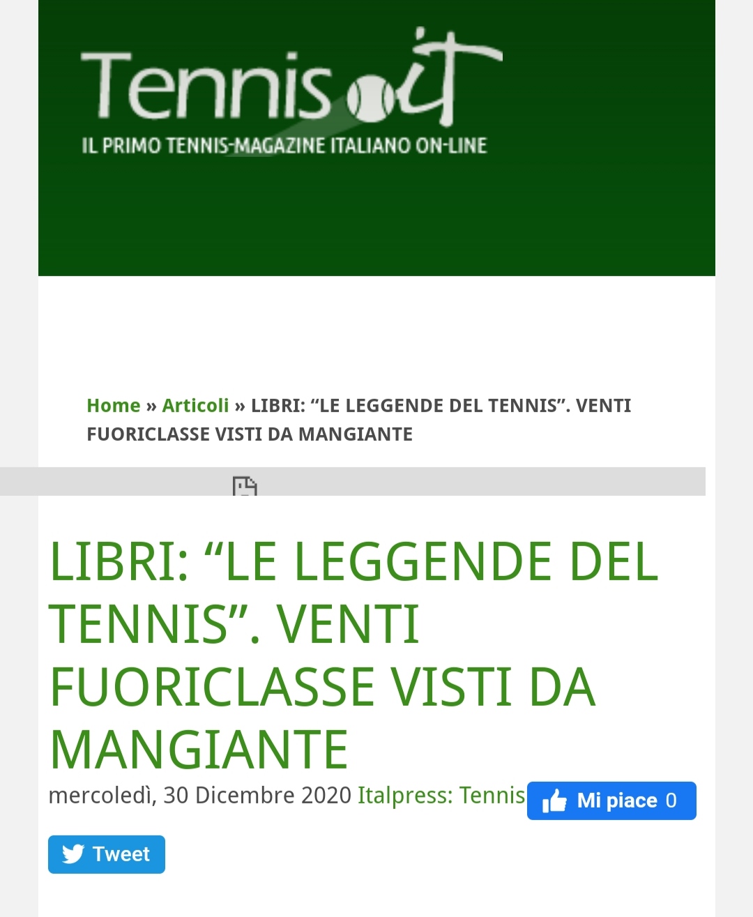 LIBRI: “LE LEGGENDE DEL TENNIS”. VENTI FUORICLASSE VISTI DA MANGIANTE su Tennis.it