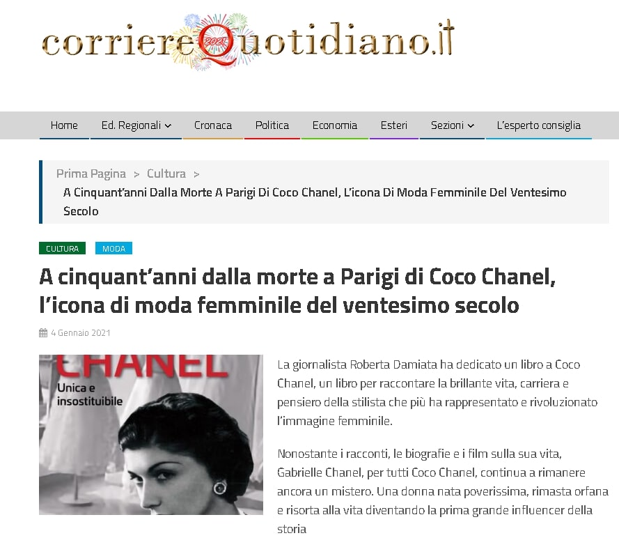 Coco Chanel di Roberta Damiata. A cinquant'anni dalla morte su Corriere Quotidiano