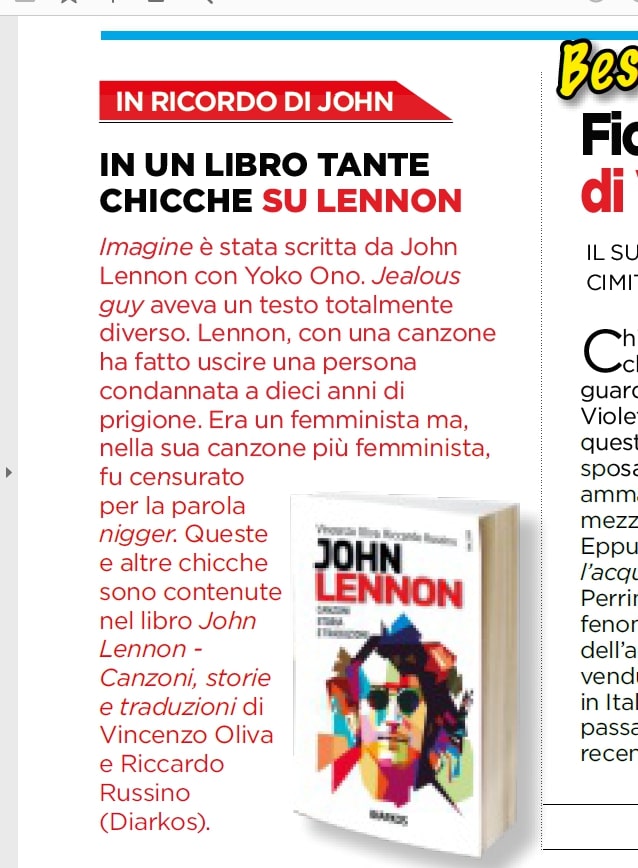 JOHN LENNON di Vincenzo Oliva e Riccardo Russino su Oggi settimanale - Gennaio 2021