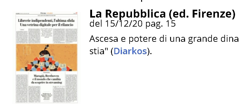 "I Medici. Ascesa e potere di una grande dinastia" di Claudia Tripodi su La Repubblica (ed. Firenze) del 15/12/20 pag. 15
