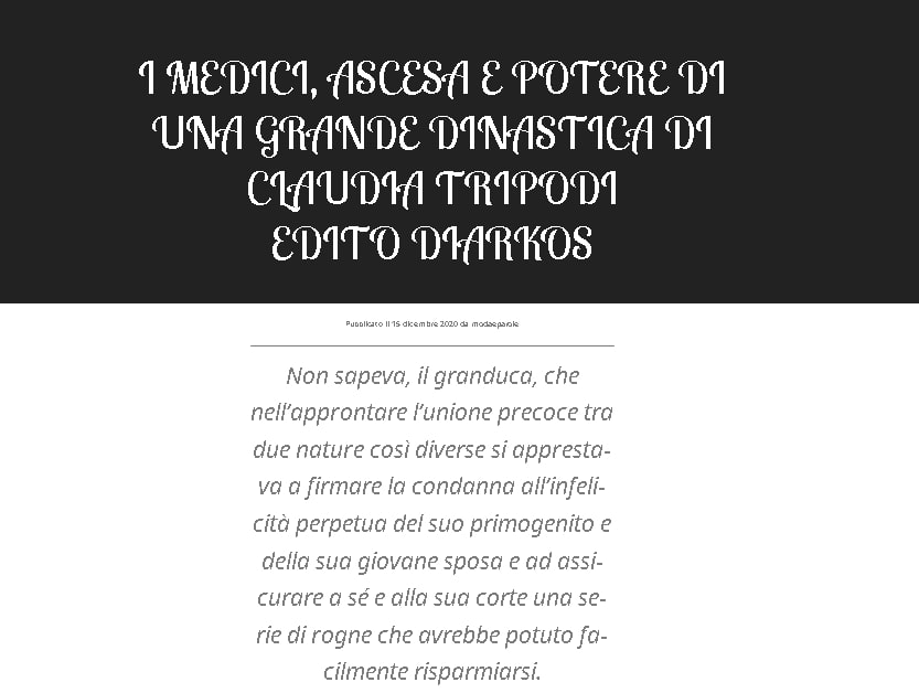 I Medici, ascesa e potere di una grande dinastica di Claudia Tripodi edito Diarkos sul blog Moda e Parole