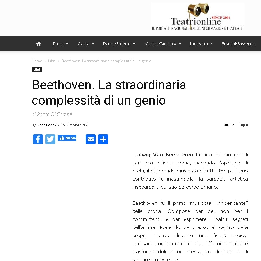 LIBRI/A 250 anni dalla nascita Rocco Di Campli pubblica ‘Beethoven – la straordinaria complessità di un genio’ su Il Mohicano