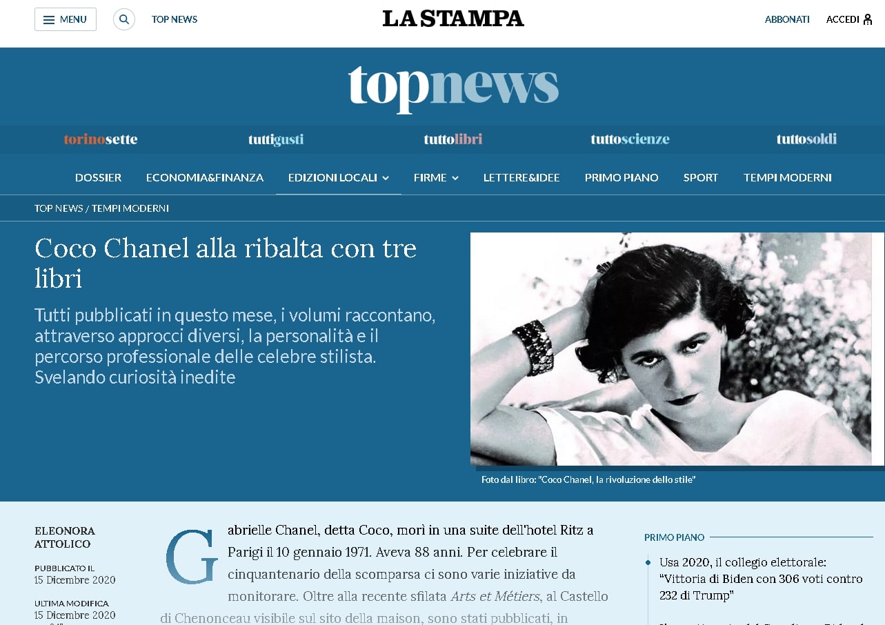 COCO CHANEL. Unica ed insostituibile di Roberta Damiata su La Stampa