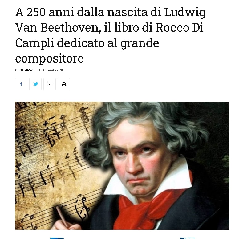 A 250 anni dalla nascita di Beethoven, il libro di Rocco Di Campli dedicato al grande compositore su Caserta Web