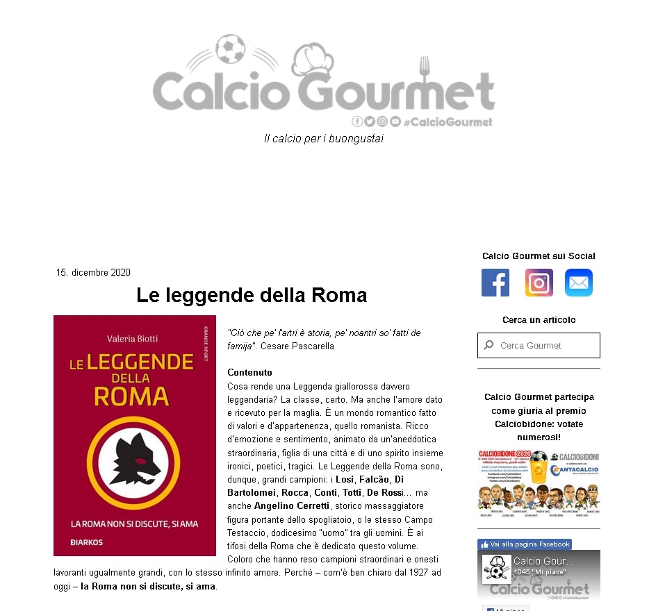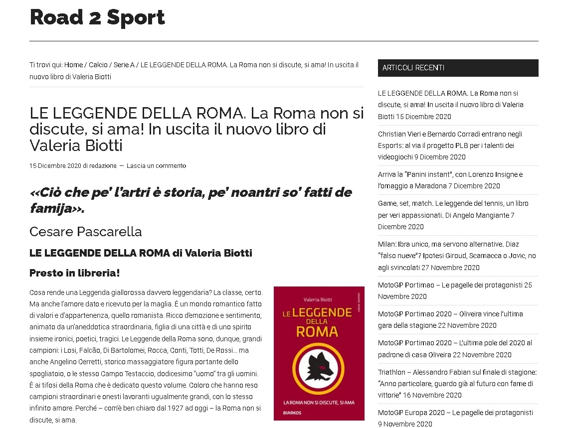 LE LEGGENDE DELLA ROMA. La Roma non si discute, si ama! In uscita il nuovo libro di Valeria Biotti su Road To Sport