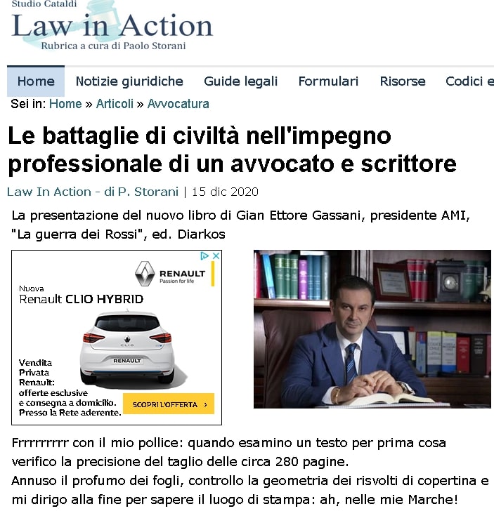 Le battaglie di civiltà nell'impegno professionale di un avvocato e scrittore su Studio Cataldi