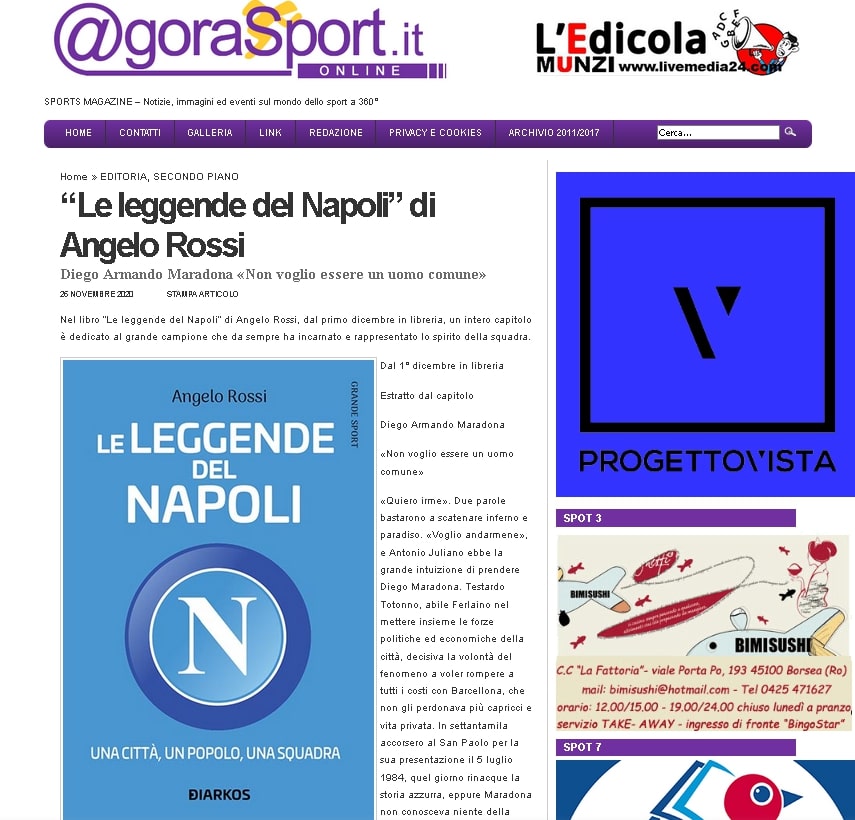 “Le leggende del Napoli” di Angelo Rossi su Agora Sport Online
