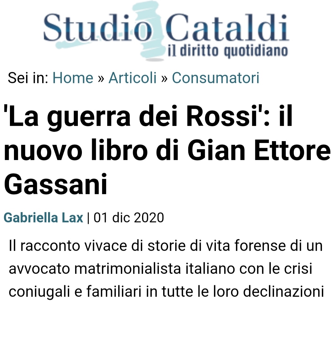 'La guerra dei Rossi': il nuovo libro di Gian Ettore Gassani su Studio Cataldi
