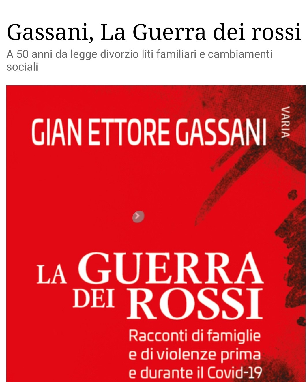 Gassani, La Guerra dei rossi A 50 anni da legge divorzio liti familiari e cambiamenti sociali su Ansa.it