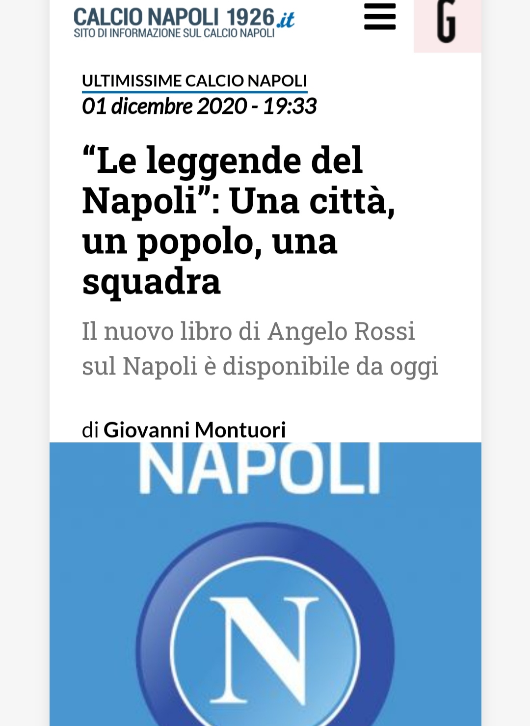”Una città, un popolo, una squadra”. In liberia dal 1 dicembre su I am Naples.it