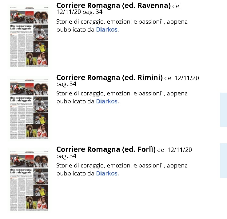 "Le leggende del motociclismo" di Fabio Fagnani su Corriere Romagna del 12/11/20 pag. 34