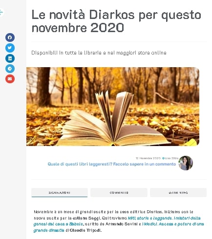 Continuano le uscite per novembre 2020, targate Diarkos su IcrewPlay Libri