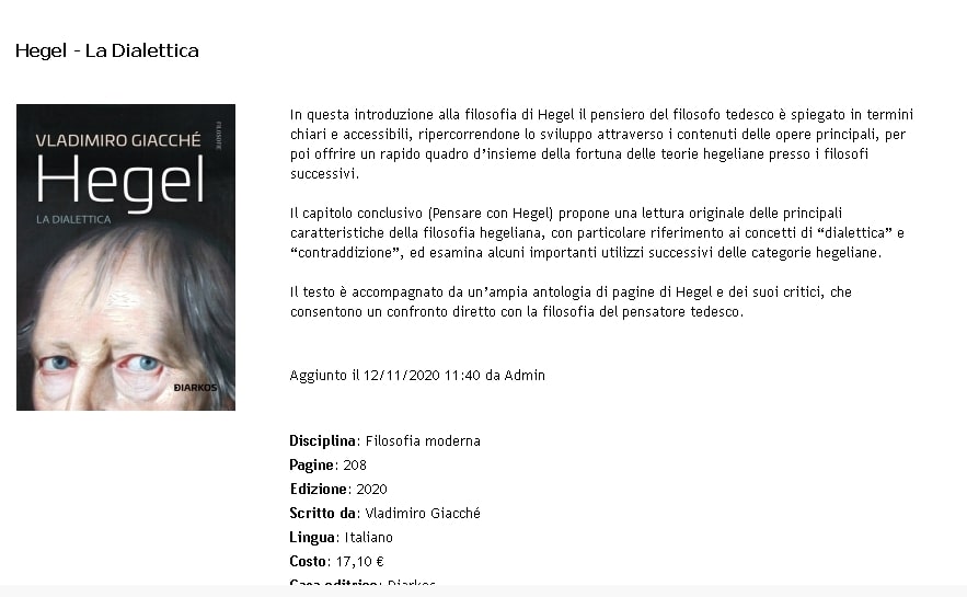 Recensione: "Hegel. La dialettica" di Vladimiro Giacchè su Rivista di storia della filosofia, 3/2020, pp. 620-622.