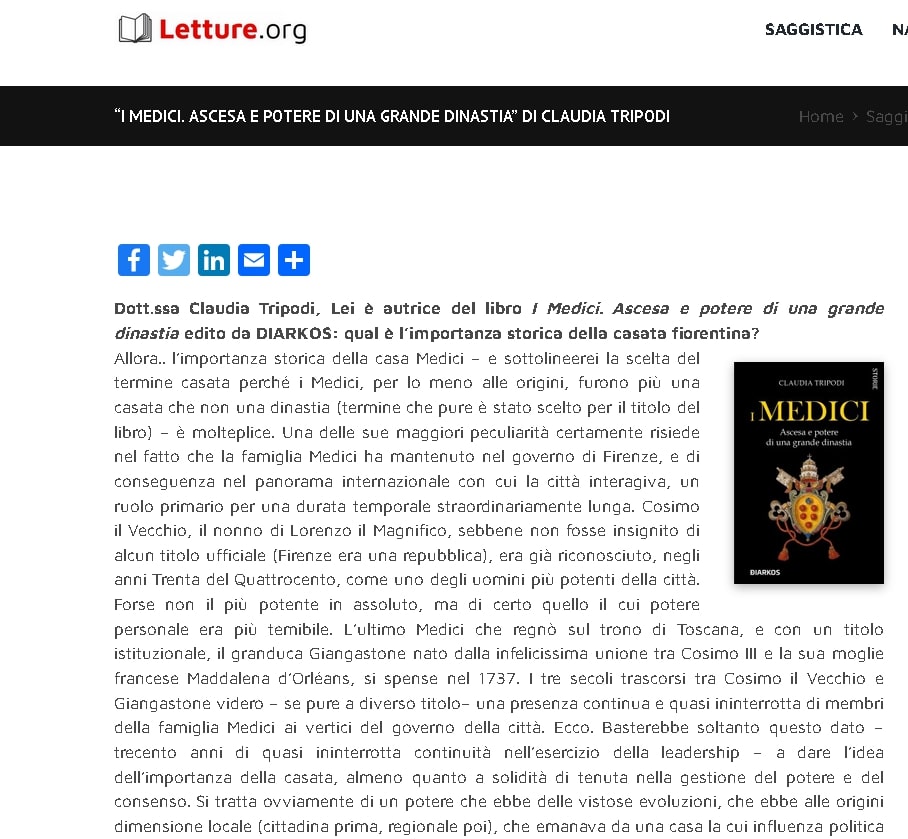 Intervista a Claudia Tripodi autrice de "I Medici" su Letture.org