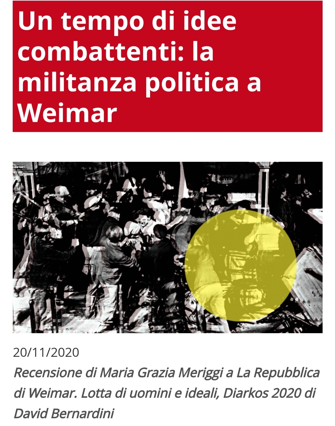 La Repubblica di Weimar. Lotta di uomini e ideali di David Bernardini su Commonware