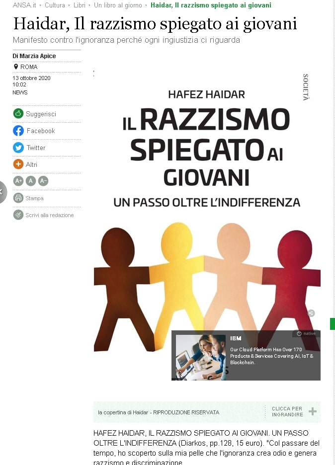 Haidar, Il razzismo spiegato ai giovani su ANSA.it