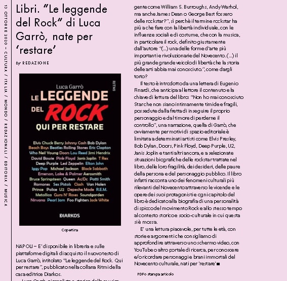 Libri. “Le leggende del Rock” di Luca Garrò, nate per ‘restare’ su Crudiezine