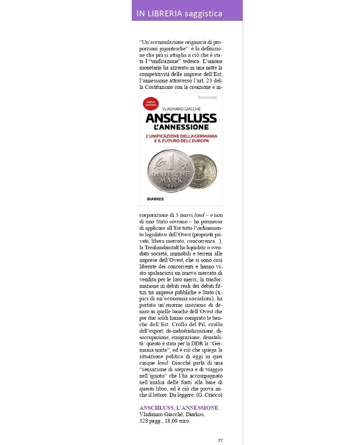 Anschluss. L’annessione, Vladimiro Giacché - Recensione sulla rivista Pagina Uno n. 69
