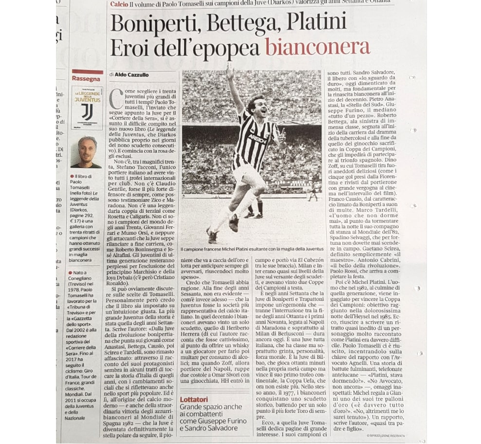 "LE LEGGENDE DELLA JUVENTUS" di Paolo Tomaselli su Corriere della Sera (ed. Nazionale) del 04/08/20 pag. 35