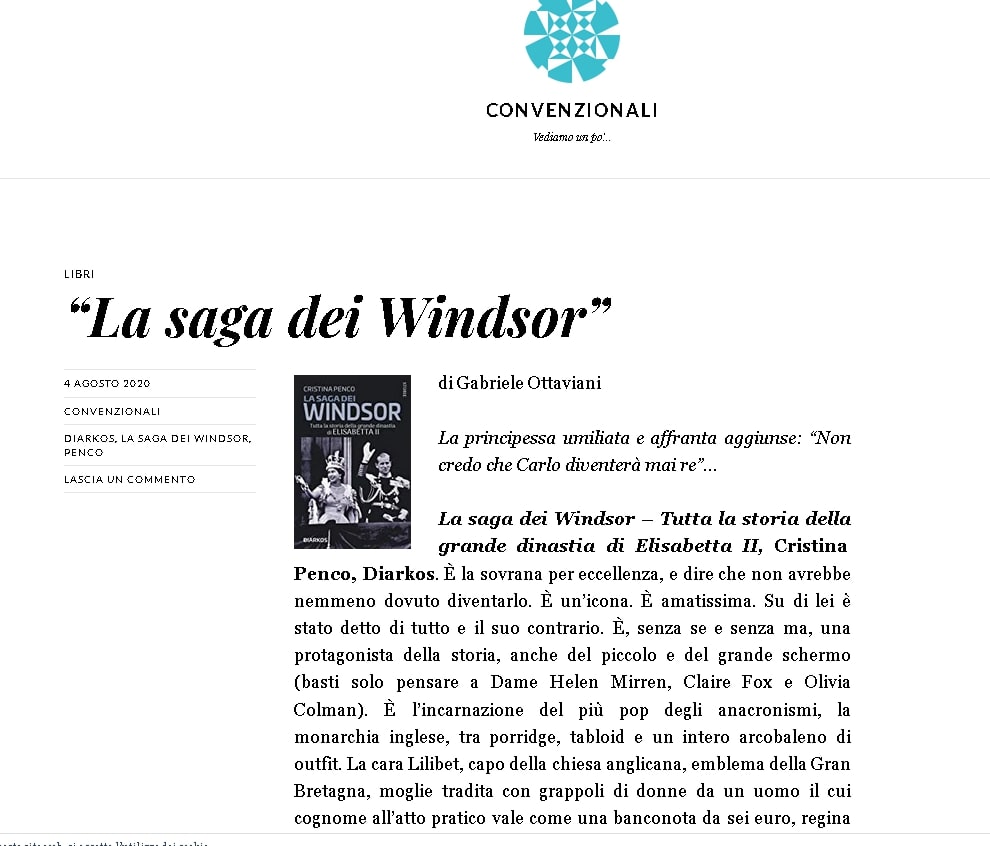 “La saga dei Windsor” di Cristina Penco su Convenzionali