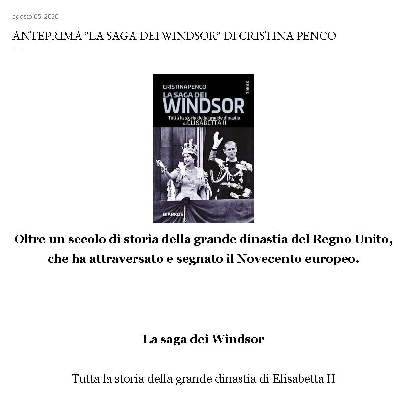 Il Blog Babele Letteraria segnala il nuovo libro di Cristina Penco "La saga dei Windsor"