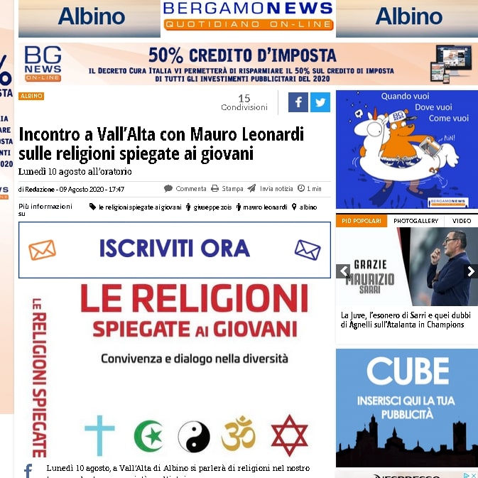 Lunedì 10 agosto, a Vall’Alta di Albino si parlerà di religioni nel nostro tempo e dentro una società multietnica su Bergamo News