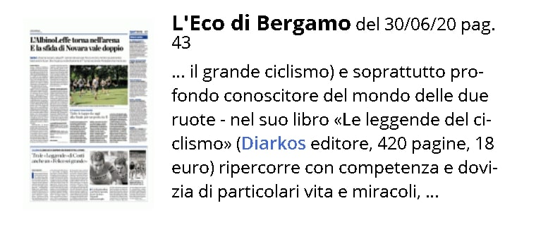 Le leggende del ciclismo di Beppe Conti su L'Eco di Bergamo del 30/06/20 pag. 43