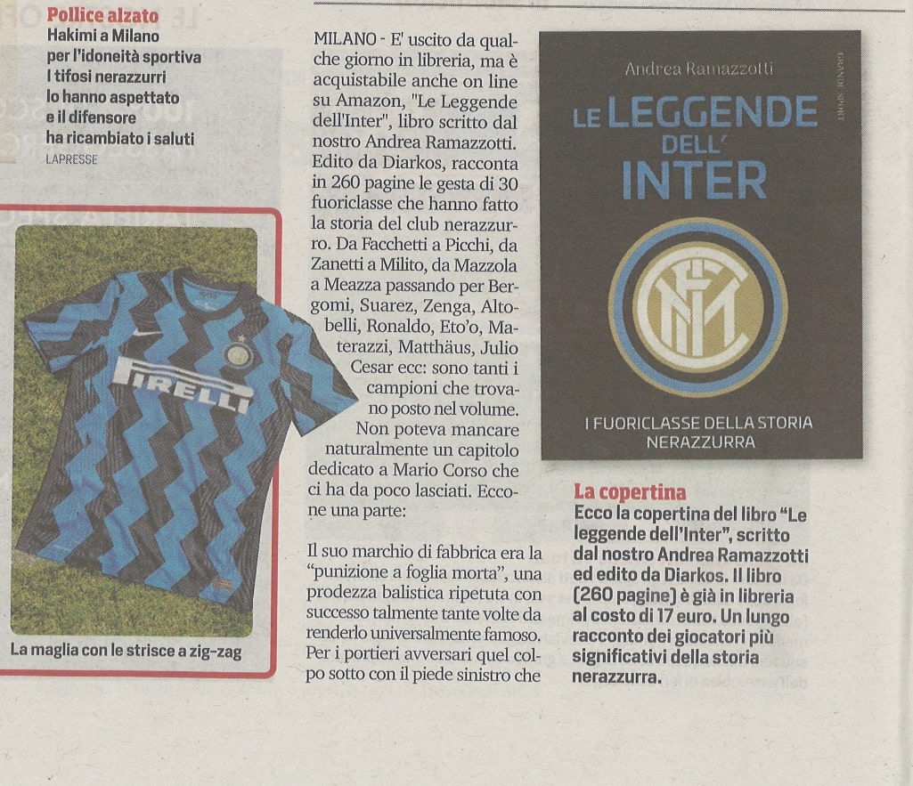 Le leggende dell'Inter di Andrea Ramazzotti su Corriere dello Sport del 01/07/20 pag. 12