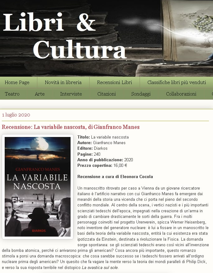 Intervista a Gianfranco Manes autore de "La variabile nascosta" per il blog letterario Les Fleurs du Mal