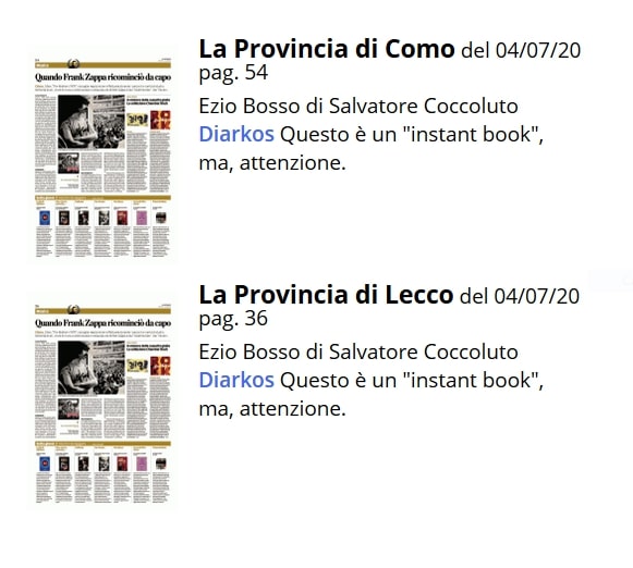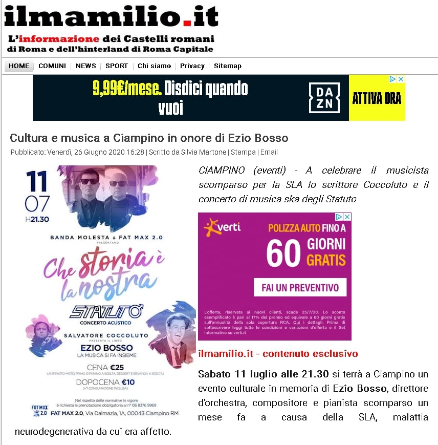Ezio Bosso. La musica si fa insieme di Salvatore Coccoluto su La Provincia di Como del 04/07/20 pag. 54 e La Provincia di Lecco del 04/07/20 pag. 36