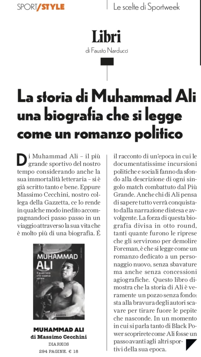 Muhammad Ali di Massimo Cecchini su Sport Week del 04/07/20 pag. 80