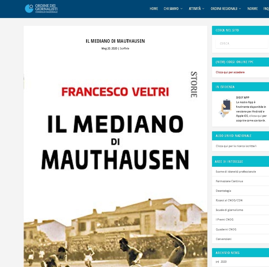 Segnalazione de "Il Mediano di Mauthausen" di Francesco Veltri sul sito ODG Consiglio Nazionale Ordine Nazionale Dei Giornalisti
