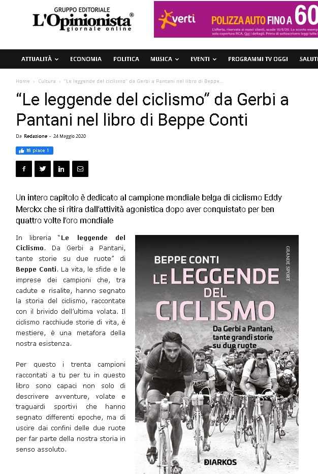 “Le leggende del ciclismo” da Gerbi a Pantani nel libro di Beppe Conti