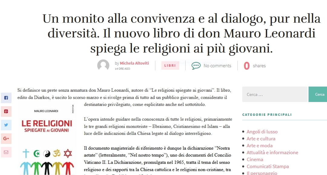 Le religioni spiegate ai giovani, l'ultimo libro di don Mauro Leonardi su Eventi Culturali Magazine