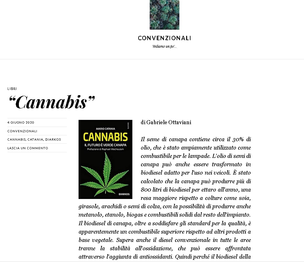 Cannabis. Il futuro è verde canapa di Mario Catania su Convenzionali