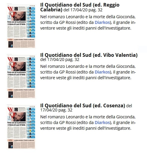 “Leonardo e la morte della Gioconda” di G.P. Rossi oggi su Il Quotidiano del Sud