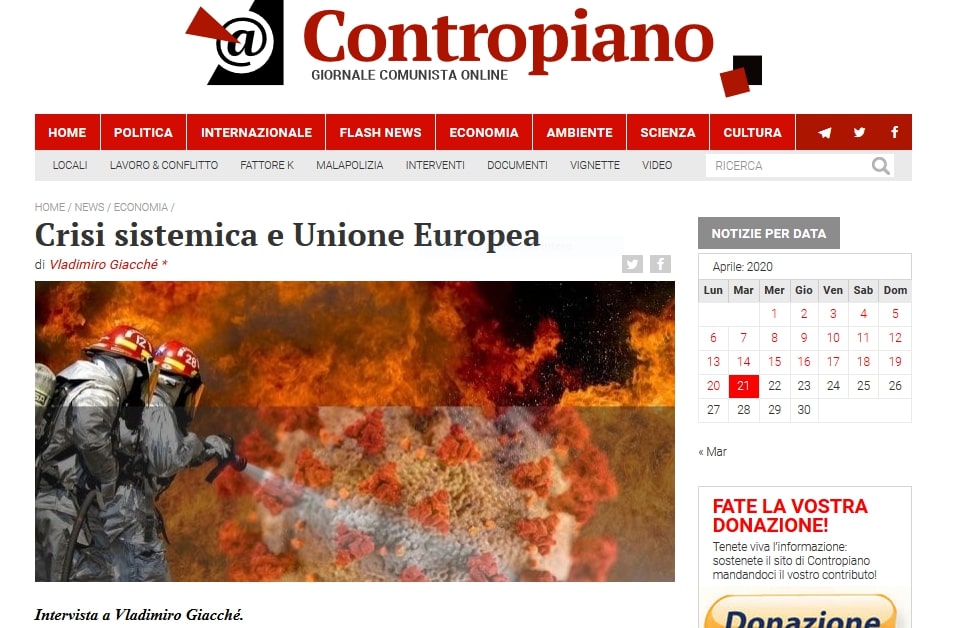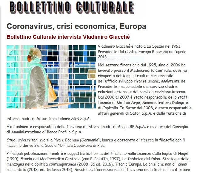 BOLLETTINO CULTURALE Coronavirus, crisi economica, Europa Bollettino Culturale intervista Vladimiro Giacché