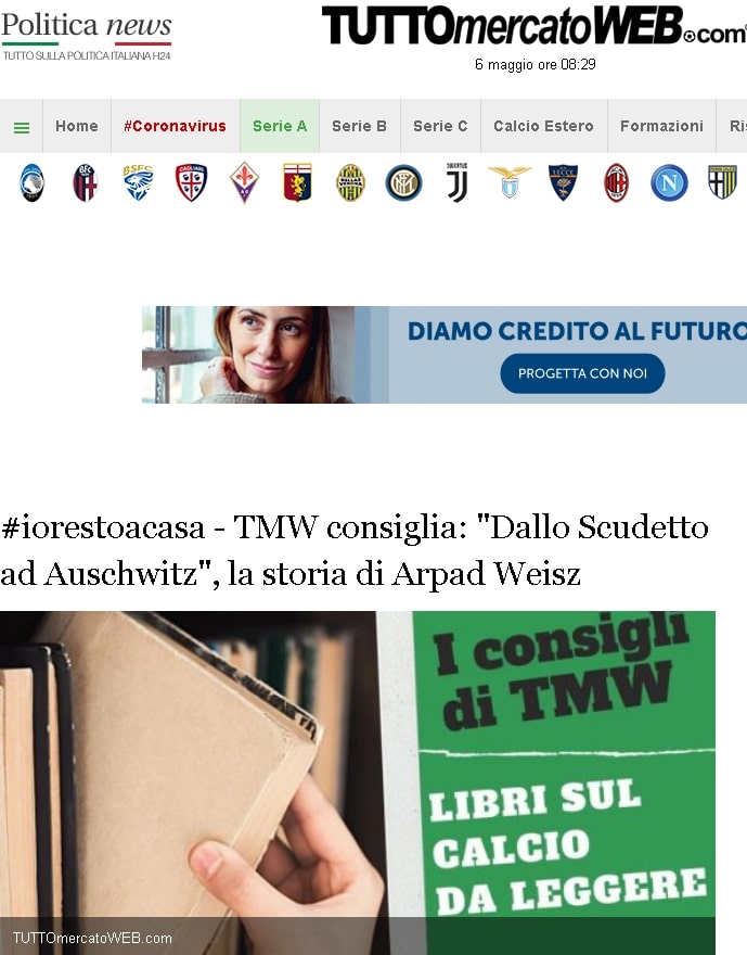#iorestoacasa - TMW consiglia: "Dallo Scudetto ad Auschwitz", la storia di Arpad Weisz su Tuttocalcioweb