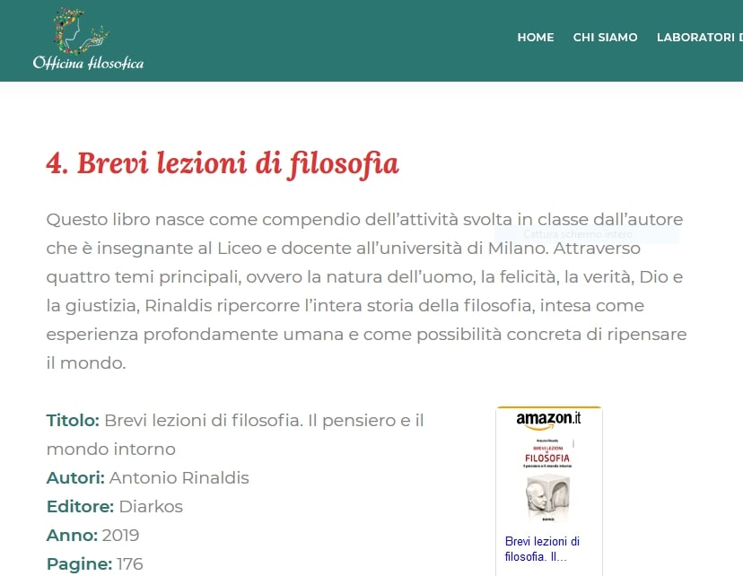 Brevi lezioni di filosofia di Antonio Rinaldis consigliato da Officina Filosofica