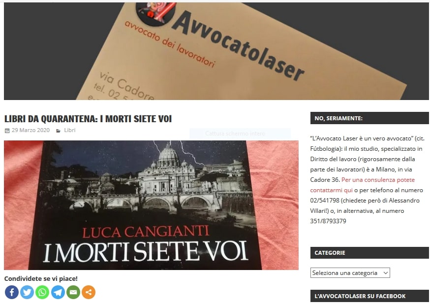Libri da quarantena: I morti siete voi di Luca Cangianti consigliato da Avvocato Laser