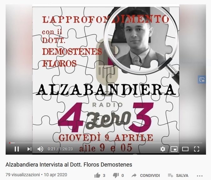 Intervista a Demostenes Floros autore di "Guerra e pace dell'energia" nella trasmissione Alzabandiera di RADIO 4zero3 di giovedì 9 aprile.