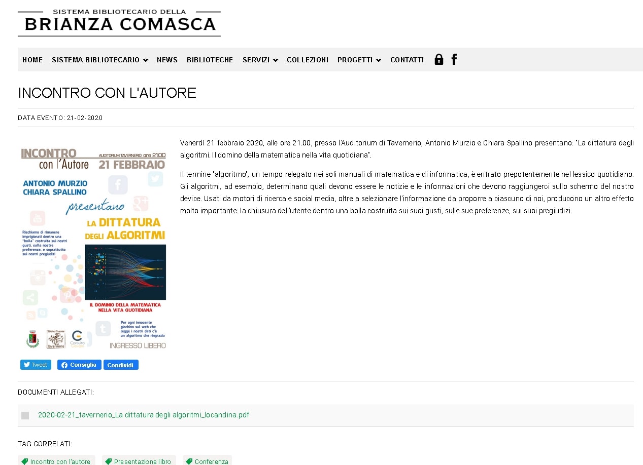 La dittatura degli algoritmi di Antonio Murzio e Chiara Elisa Spallino su Brianza Comasca