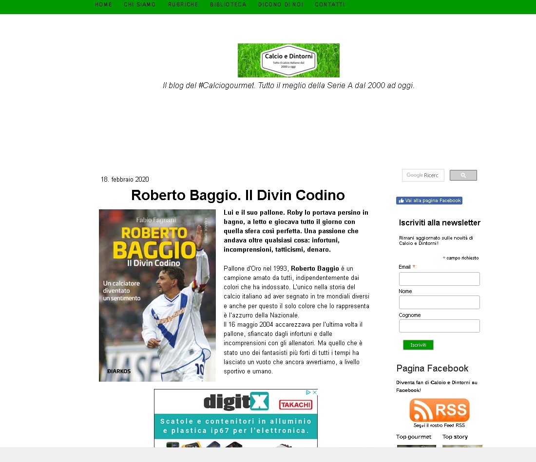 Roberto Baggio. Il Divin Codino di Fabio Fagnani su Napoli Magazine