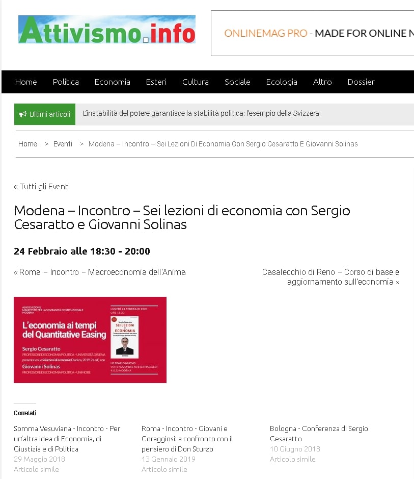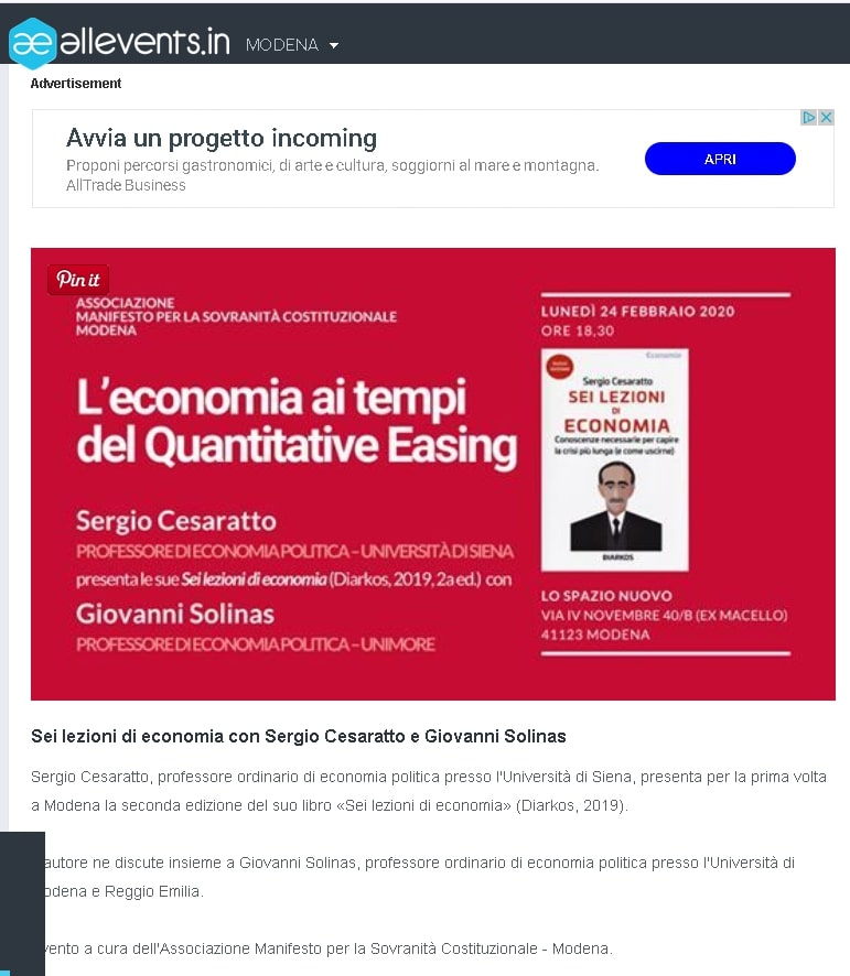 Sei lezioni di economia con Sergio Cesaratto e Giovanni Solinas su All events Modena