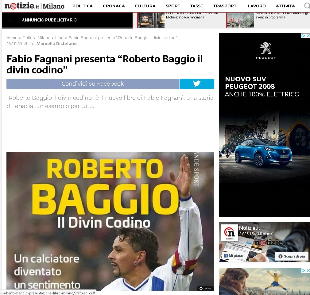 Presentazione di Roberto Baggio. Il Divin Codino di Fabio Fagnani allo Spazio Open su Milano Notizie