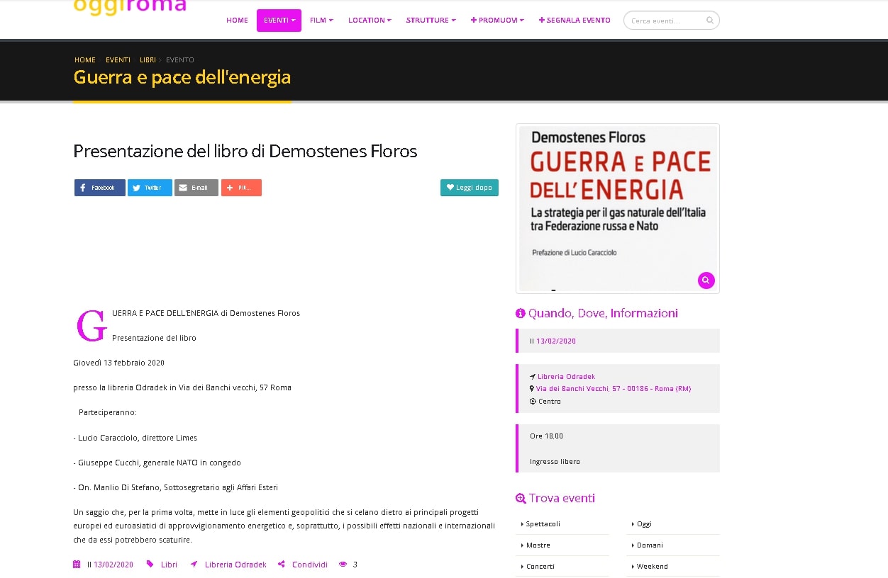 Presentazione di "GUERRA E PACE DELL'ENERGIA" di Demostenes Floros su Limes